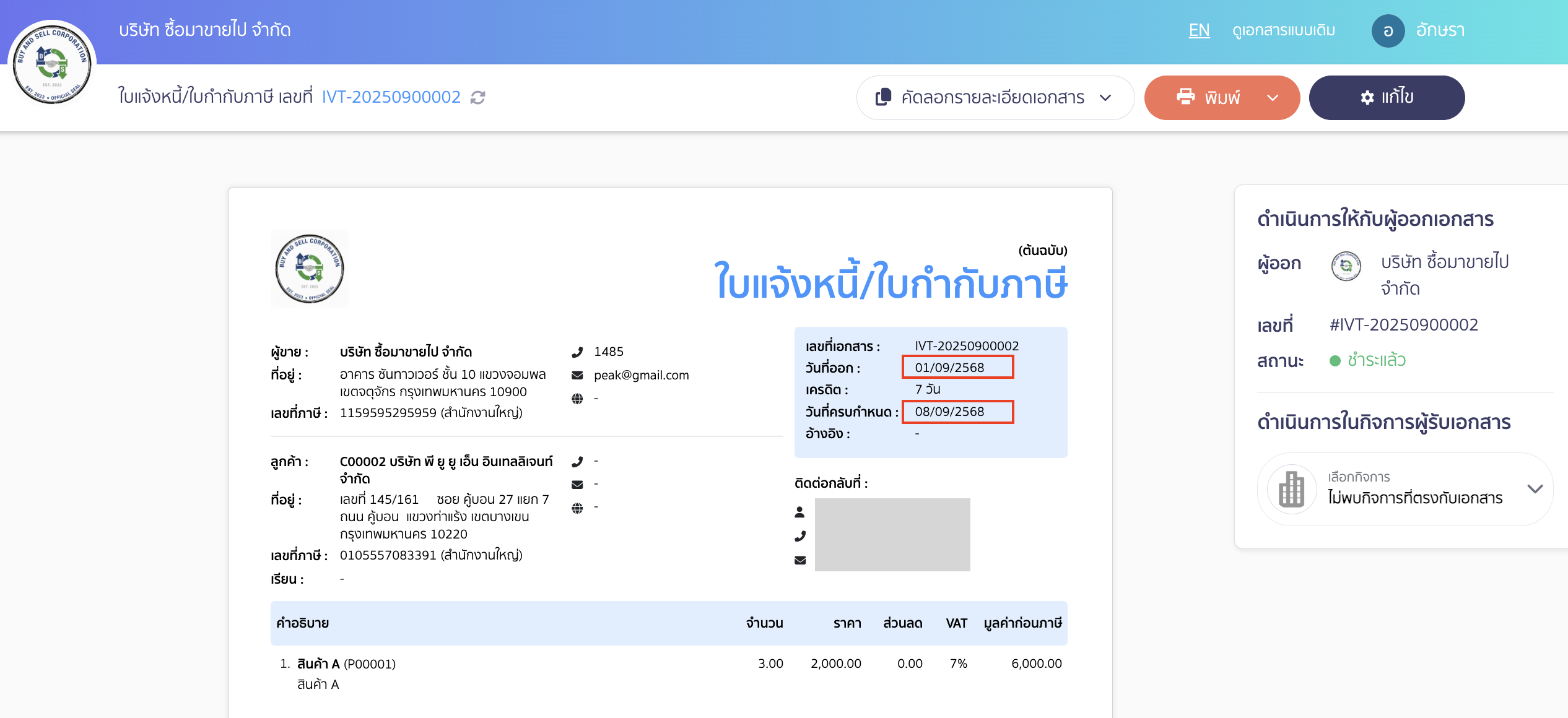 ตัวอย่างเอกสาร กรณีเลือกให้แสดงวันที่แบบ DD/MM/YYYY (พ.ศ. 2568)