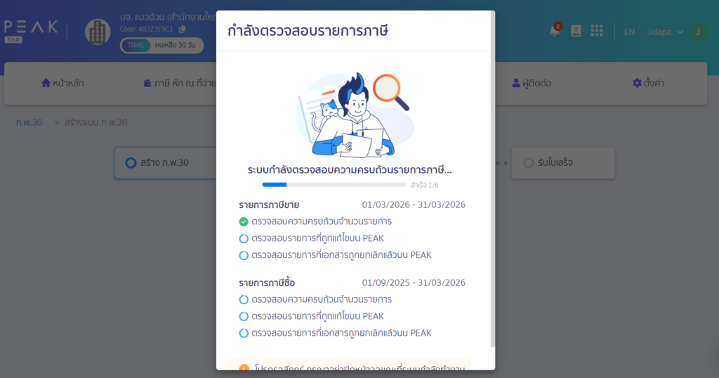 ระบบจะทำการตรวจสอบรายการภาษี